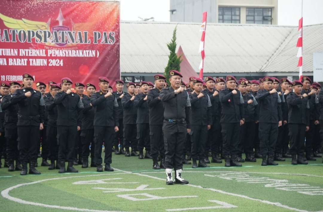 GARUT – KABAR MERDEKA | Dalam rangka melaksanakan pencegahan dan penindakan gangguan keamanan dan ketertiban secara efektif serta perbaikan seluruh aspek pelaksanaan tugas pemasyarakatan yang meliputi fungsi pembinaan petugas dan peningkatan layanan pemasyarakatan, Kalapas Garut, Rusdedy beserta jajaran hadir secara langsung dalam acara apel pengukuhan satuan operasional kepatuhan dan internal atau dikenal dengan istilah “SATOPS PATNAL” wilayah Kementerian Hukum dan HAM Jawa Barat, Senin (19/02/2024).