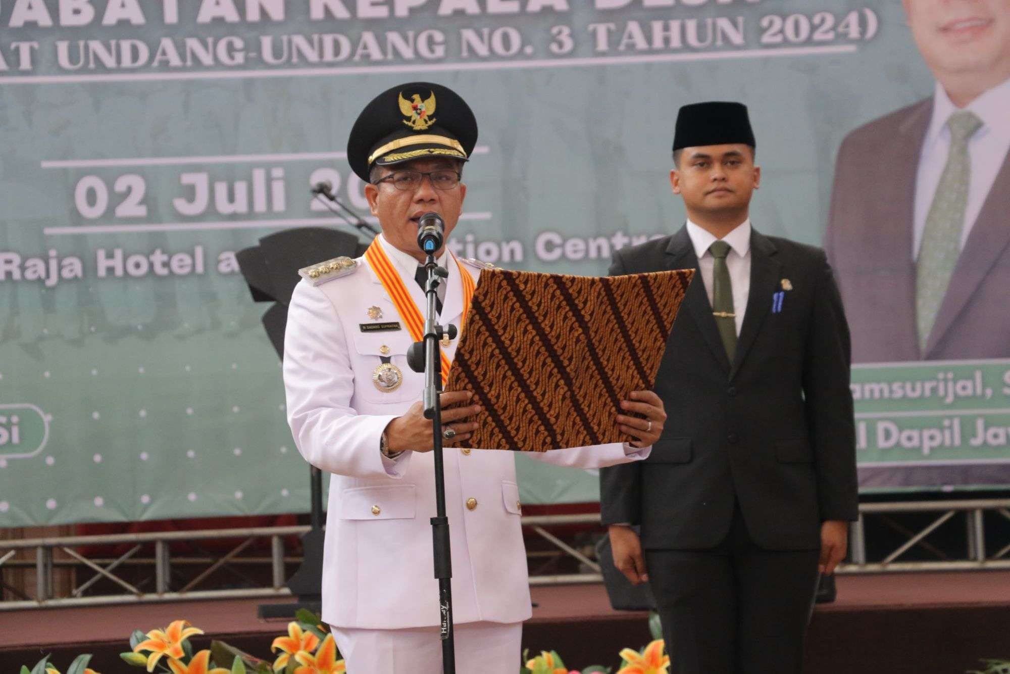 “Kalau kepala desa masa jabatannya ditambah jadi 8 tahun. Kalau saya, masa jabatan 5 tahun dikurangi menjadi 3,5 tahun sesuai UU 10 Tahun 2016. Jadi para kepala desa harus bersyukur,” ujar Bupati sembari tertawa.
