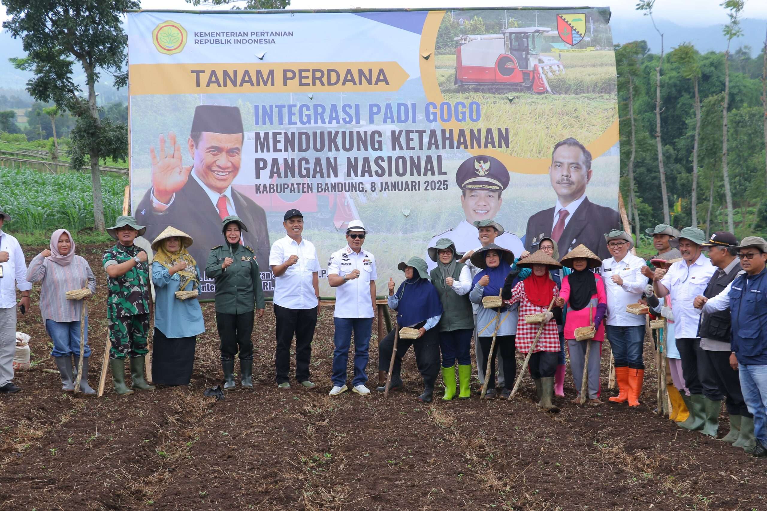 Bupati Bandung Dadang Supriatna menjelaskan program penanaman padi gogo terintegrasi ini merupakan bentuk komitmen Pemkab Bandung dalam rangka mendukung program ketahanan pangan Presiden Prabowo Subianto.