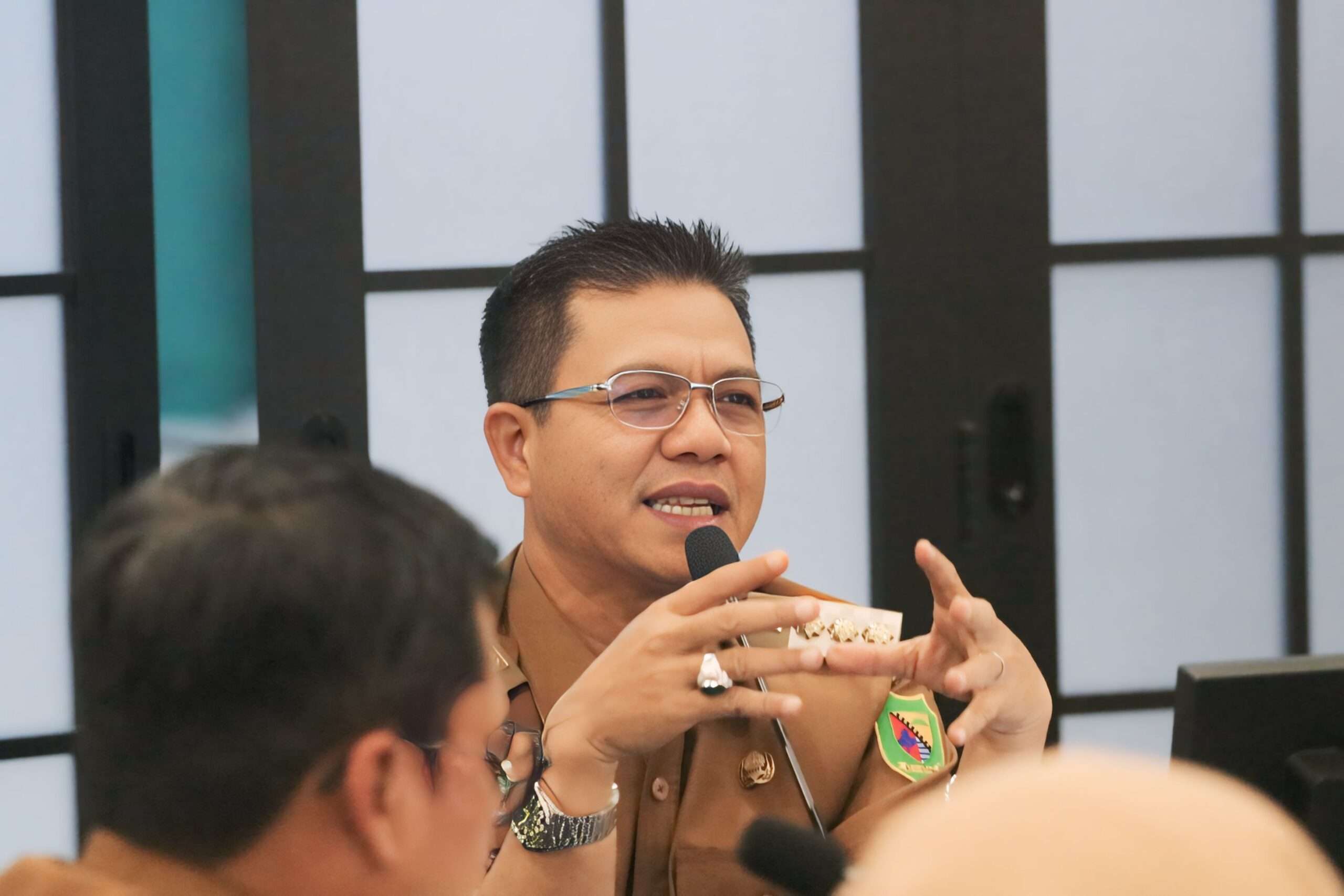 Bupati Dadang Supriatna menyampaikan beberapa poin dalam pemaparannya di hadapan Kepala Dispusip Kabupaten Bandung Teguh Purwayadi dan jajarannya.