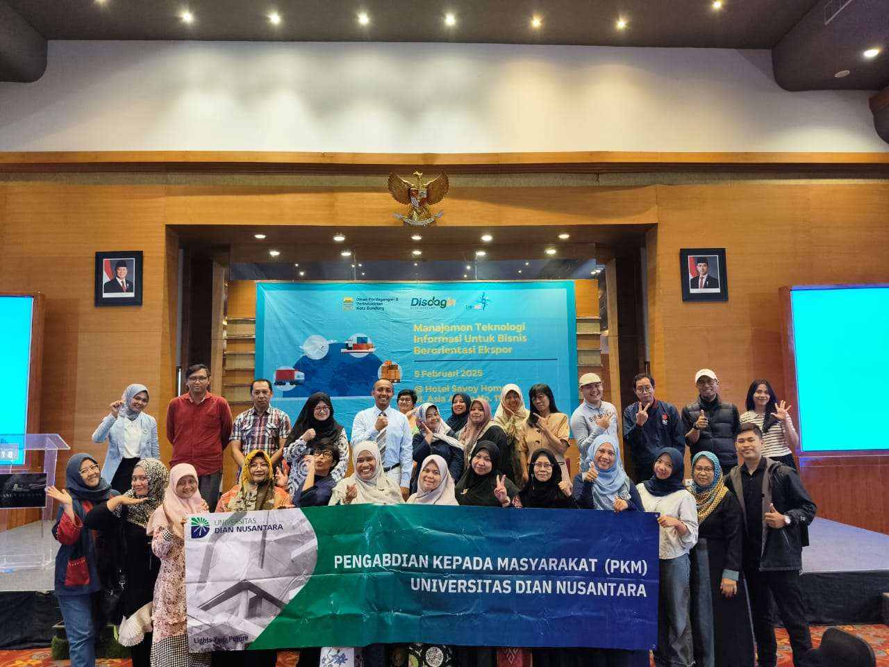 Untuk mencapai tujuan ini, maka dihadirkan para narasumber yang ahli di bidangnya, seperti Prof. Steph Subanidja, guru besar di bidang Ilmu Manajemen, Prof. Ari Purwanti Guru Besar di bidang Ilmu Akuntansi dari Universitas Dian Nusantara, Dr. Jerry Sambuaga Wakil Rektor bidang Hubungan Eksternal Universitas Pelita Harapan, Bayu Wicaksono Putro, S.T, M.A, Direktur Pengembangan Pasar dan Informasi Ekspor Kementrian Perdagangan, Eriklex Donald, S.E, M.M Eksportir yang juga Dosen Prodi Manajemen Universitas Dian Nusantara, Mr. Joop Baaijens Perwakilan dari Belanda dan eropa, dan 100 pelaku UMKM Kota Bandung