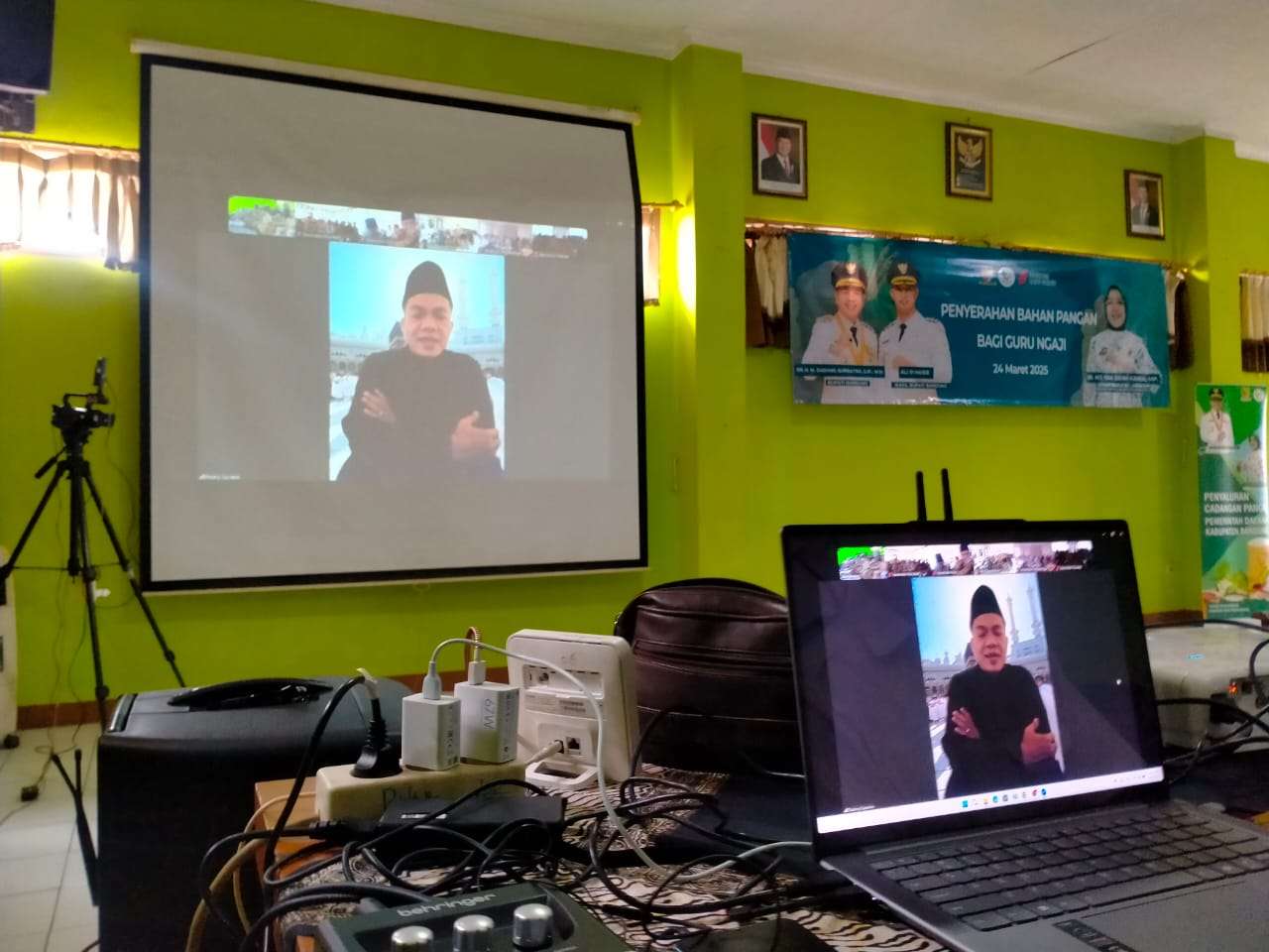 KAB. BANDUNG | KABAR MERDEKA – Pemerintah Kabupaten (Pemkab) Bandung menyerahkan bantuan cadangan pangan kepada guru ngaji secara serentak melalui virtual di Aula Kecamatan Cangkuang, Senin (24/5/2024) siang.